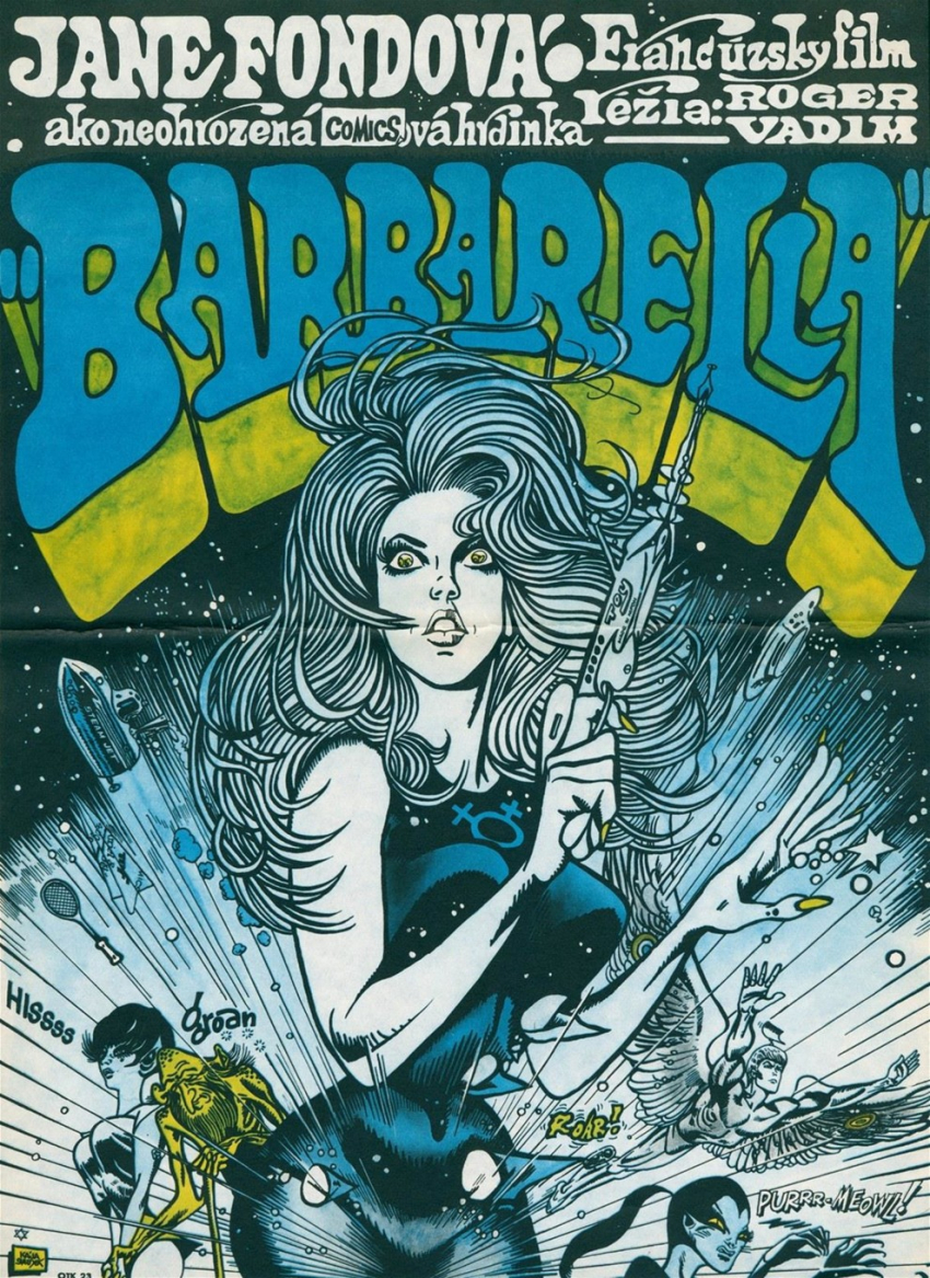 БарбареллаНадо сказать, что Франция в каком-то смысле опережала Америку: например, фильм Роже Вадима появился на родине в 1956 году, тогда как в США – лишь годом позже, с трудом преодолев давление со стороны Лиги благопристойности и Армии спасения. «Сексуальный революционер» Вадим увидел в «Барбарелле» потенциал то ли для нового шедевра, то ли для очередного скандала. Молодая Джейн Фонда, психоделические краски и неподвижная камера позволили максимально приблизиться к рисованному оригиналу.