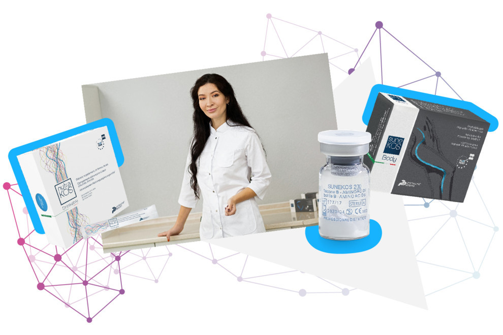 В чем фишка аминокислот?Аминокислотные комплексы абсолютно биосовместимы с нашим организмом и запускают уникальные каскадные реакции. Тут как с питанием: чтобы нарастить мышечную массу и улучшить состояние тканей, мы переходим на богатую белком диету. SuneKOS – это все равно чтопитание для кожи, сконцентрированное на биорегенерации внеклеточного матрикса.