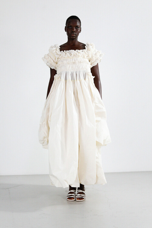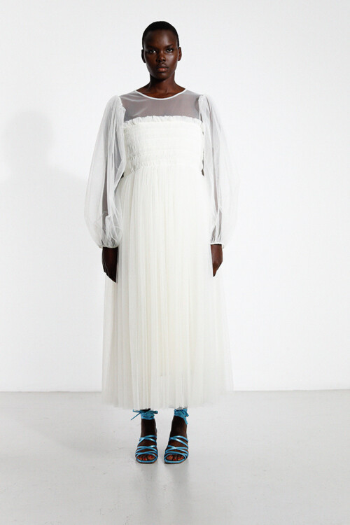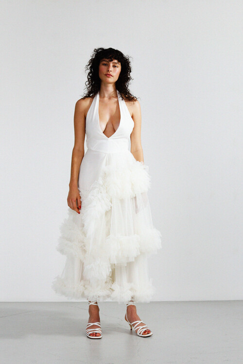 Molly Goddard Bridal"Создать свадебное платье – сложное дело", – говорит дизайнер. В основу своей коллекции Молли Годдард положила идею создания доступных и персонализированных свадебных платьев. Все платья из подвенечной коллекции изготавливаются на заказ в соответствии с британской размерной сеткой. Каждое из творений дизайнера – от пенистого платья Simona, созданного для шумных танцев, до платья-рубашки Aidah с роскошными рюшами и оборками снизу, – можно изменить по крою, цвету и материалу и адаптировать под себя, придав ему оттенок индивидуальности.