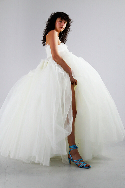 Molly Goddard BridalЦены на свадебные платья начинаются от £1,800 за лаконичный дизайн и достигают £10,000 за изысканные украшения, на создание которых уходит неделя. Каждая невеста может записаться на встречу в шоурум Molly Goddard, чтобы лично примерять различные стили платьев. В коллекцию также вошел небольшой ассортимент металлической сумок и свадебной обуви синего, кремового и серебристого цветов. Все свадебные образы Molly Goddard можно увидеть в нашей галерее.
