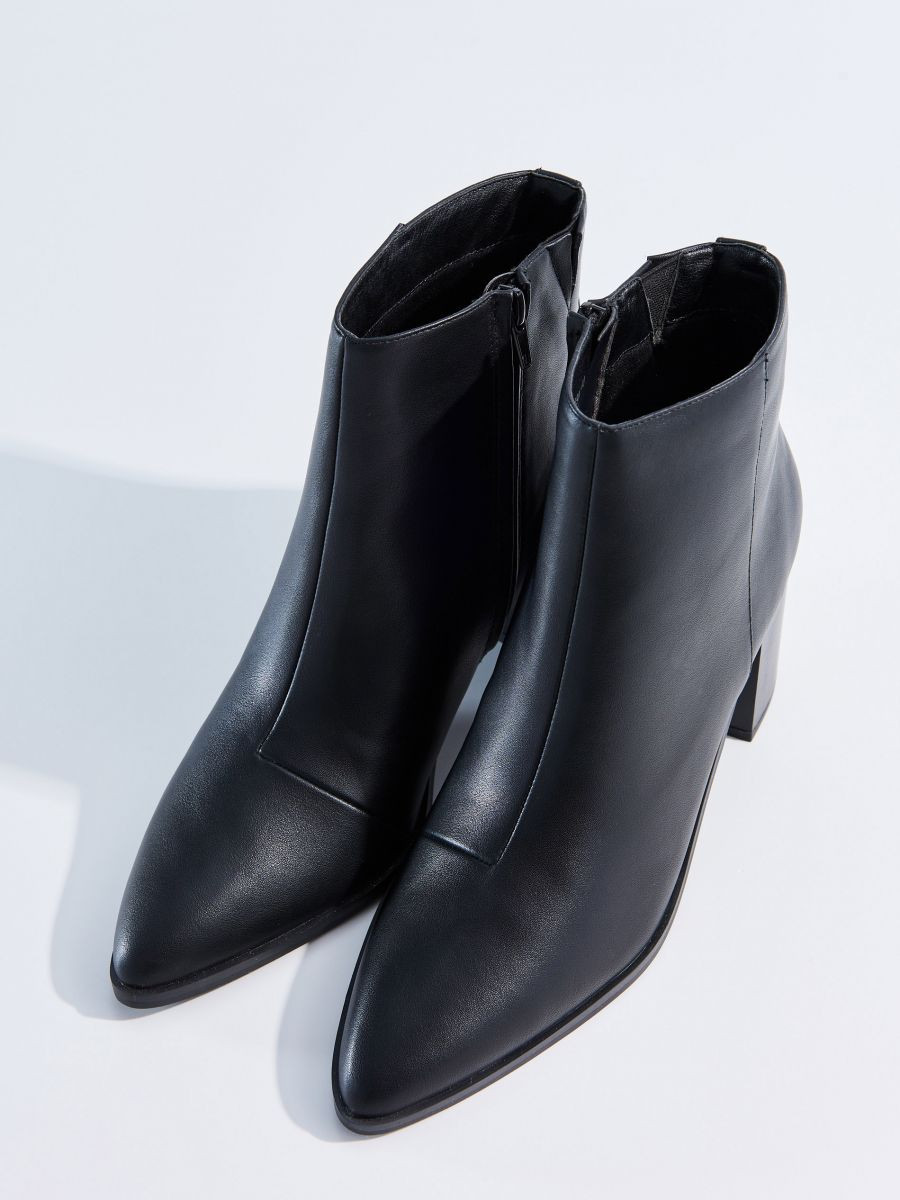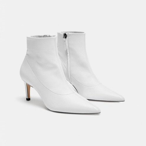 Лучшим дополнением к острому носу служит невысокая тонкая шпилька. Такие ботильоны лучше всего носить с платьями ниже колена и юбками миди. Купить ботильоны с острым носом и на тонкой шпильке можно в магазинах ZARA в ТРЦ "Фантастика" и MOHITO в ТРЦ "Седьмое небо".