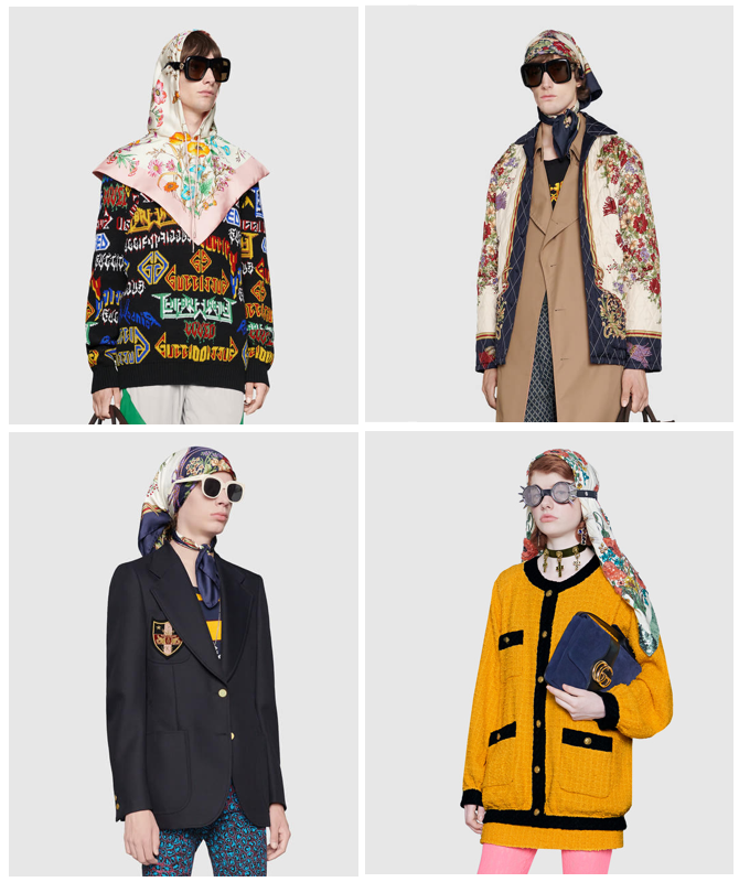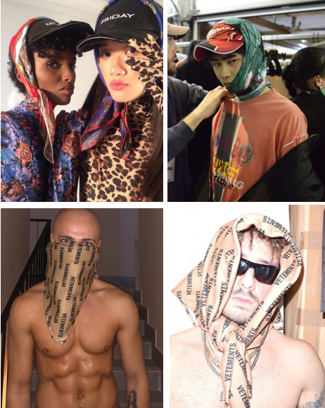 Свою лепту в моду из комода внес и топ-бренд Gucci, предложив платки-капюшоны, а также приятно удивив всех одеждой с платочными принтами. Особенно впечатляюще смотрятся узоры на блейзерах и куртках. Не отстают в этом соревновании Balenciaga и Vetements. А что же мы обижаем женщин – они ведь первые начали носить платки, так что и для них в арсенале дизайнеров найдутся неплохие варианты.