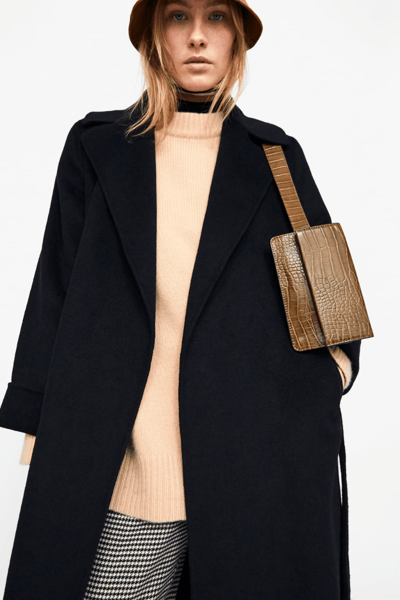 Самый остромодный вариант, особенно в прохладную погоду – надеть сумку поверх пальто/тренча. Кстати, можете дополнить look эффектной брошью на лацкане. Естественно, спортивный стиль лучше поддержать джинсами с подворотами или укороченными брюками, отлично впишутся в этот образ кроссовки.