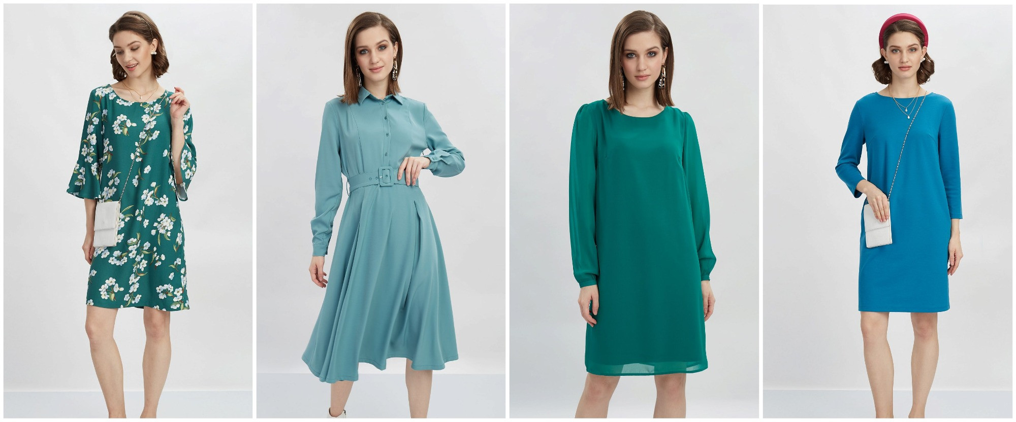 Сдержанные морские оттенки так и настраивают на спокойный размеренный лад. Эти цвета-антидепрессанты можно использовать в образах для офиса и рабочих встреч. Платья-рубашки, футляры, с плиссировкой — это самый короткий перечень актуальных моделей. Аксессуары и обувь следует выбирать в пастельных и молочных тонах — словно пена на морской волне.