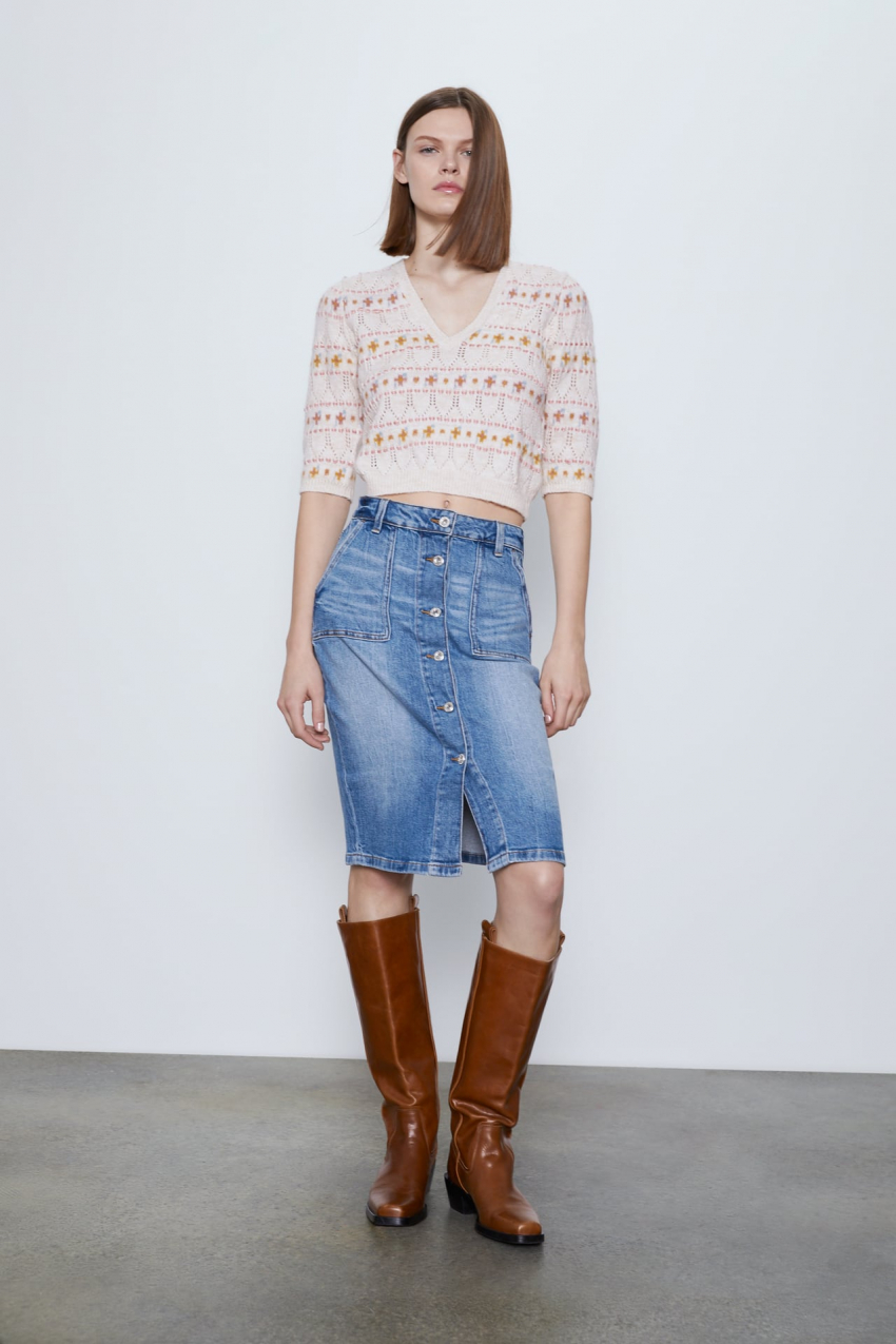 Джинсовые миди появлялись на полках еще в прошлом сезоне, но были абсолютно непрактичны: если вы не обладаете мягкой поступью гейши, в такой юбке далеко не уйти. Наконец, дизайнеры додумали сюжет и предложили новый хит — модель с волнующим вырезом спереди. Широкий шаг теперь ничего не сдерживает — можно смело спешить по делам, игриво оголяя колени.