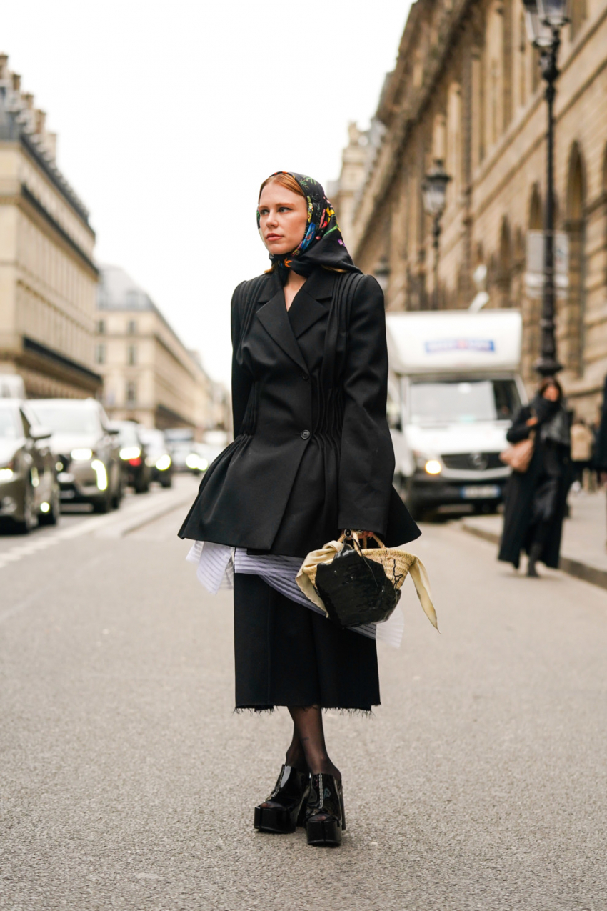 Вслед за брендами, такими, как Marc Jacobs, Gucci, Jacquemus, Stella McCartney и Dior, добавить косынку в свои гардеробы решились и модницы, в первую очередь, из-за ее функциональности – это по праву лучшая защита от солнца, ветра и влаги при любой погоде. Косынки, или как их еще называют babushka scarf (не без участия A$AP Rocky), также невероятно универсальны – не обязательно носить их исключительно с юбками длины миди и трикотажными кардиганами. Этой зимой советуем собирать самые разные модные комбинации: в ход пойдет и трендовое кожаное пальто, и пиджаки с мужского плеча, и асимметричные жакеты, и высокие lace up boots. Выбор материала так же остается за вами - дизайнеры представили косынки из шелка, шерсти, органзы, тонкого кружева и полиэстера. Особо эффектны "дутые" модели, вторящие трендовым шарфам.