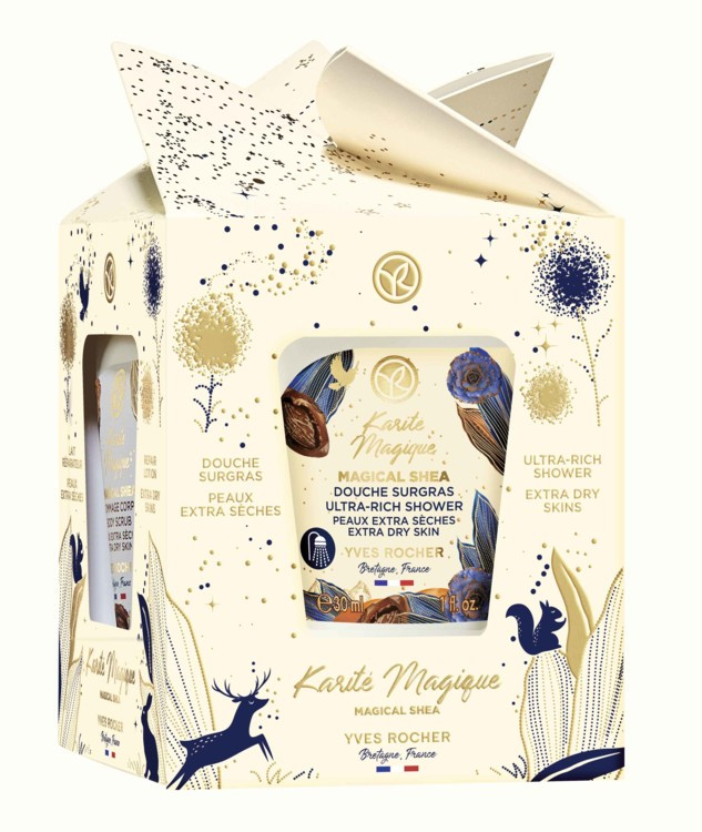 Напередодні новорічних свят Yves Rocher випустив три колекції з особливими ароматами та пакованням. Кожен із засобів може стати прекрасним екоподарунком. До засобів лінійки «Магія Каріте» ввійшла олія каріте, яку отримують з плодів однойменного дерева в Західній Африці.