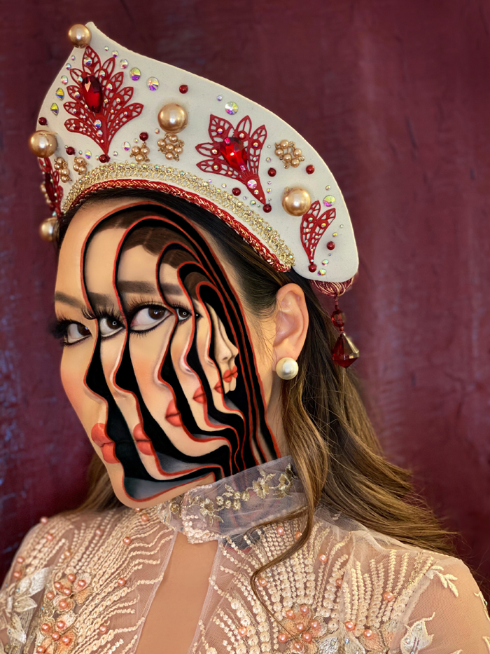 Делаем крутой макияж на ХэллоуинФото: материалы пресс-службМими Чои — профессиональный визажист из Ванкувера, которая стала известна благодаря новаторским проектам в стиле иллюзорного макияжа. Одна из ее самых известных работ — макияж для актера и модели Эзры Миллера, который года назад сразил наповал всех гостей и зрителей Met Gala 2019. Понятно, что для такого мастера, как Мими Чои, Halloween — лучшее время, когда можно не сдерживать свою фантазию и предложить самые смелые и креативные образы. Среди них, в том числе, — особенная кукла в виде матрешки, которую визажист создала специально для России.