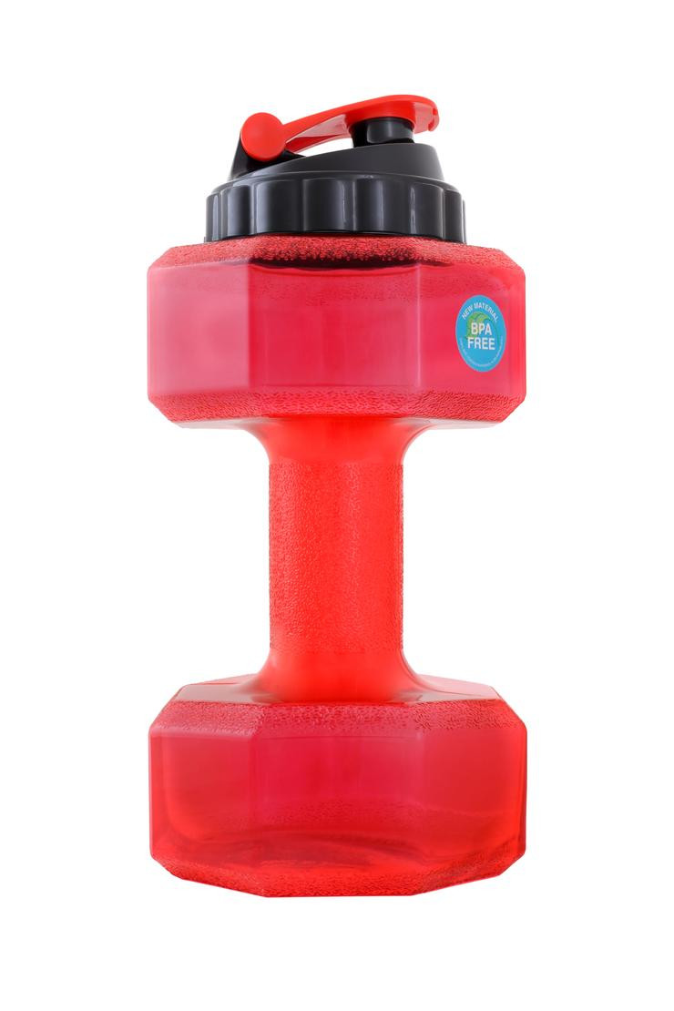Форма гантели позволяет использовать бутылку как соответствующий тренажер. В нее входит 2,2 л, а значит, что ее вес будет равен 2,2 кг. Сама бутылка сделана из безопасного пищевого пластика, не содержащего вредных веществ (в нем отсутствует BPA). Она не впитывает запахи и не портит вкус напитка — главное ее регулярно мыть. Крышка плотно закрывается, исключая возможность протекания. Спортивная бутылка позволяет удобно дозировать количество жидкости, которое необходимо выпивать спортсмену каждый день. И попутно можно качать бицепс. К слову, корпус у бутылки-гантели полупрозрачный — через него легко наблюдать, сколько жидкости еще осталось.