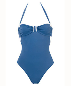 Бикини в полоску — слишком банально. В 2009 году нам предлагают цельный темно-синий купальник в стиле «ретро» с белой окантовкой, маленькими пуговичками и отстегивающимися бретельками. Чашечки снабжены дополнительной тонкой поролоновой прослойкой, которая создает комфорт и помогает купальнику идеально сидеть.