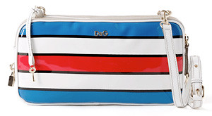 Доминико Дольче и Стефано Габбана в коллекции D&G тоже вдохновились морской темой. Красный якорь, сине-белые полоски, бескозырка и маленькая сумочка — все это продвигает концепцию отдыха под лозунгом «море, солнце и яхта».