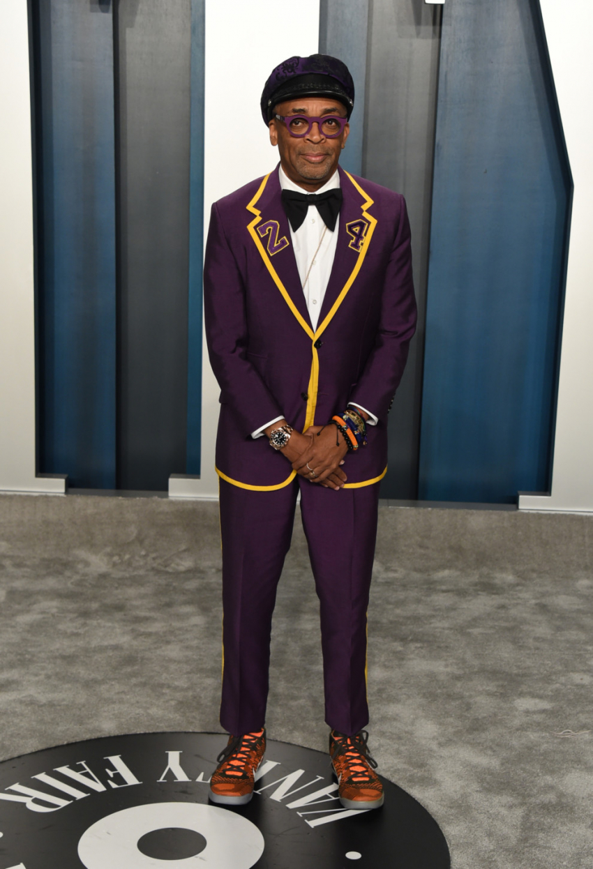 Режиссер Спайк Ли своим образом почтил память недавно погибшего баскетболиста Коби Брайанта, который разбился на вертолете 26 января. Его костюм был выполнен в фиолетово-желтой гамме – цветах его клуба "Лейкерс", лацканы пиджака украшали цифра 2 и 4, а спину номер 24, под которым играл спортсмен. Дополнили образ Спайка Ли кроссовки Nike – эту модель тоже очень любил Брайант.