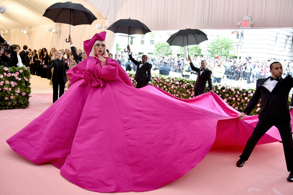 Леди Гага, 2019В прошлом году на балу Met Gala одной из самых ярких героинь была Леди Гага, выход которой на красной дорожке длился целых 16 минут. В роскошном кейпе оттенка фуксии, созданным для нее другом Брэндоном Максвеллом она была похожа цветок, под нежными лепестками которого прячется страстная натура. У артистки под кейпом пряталось сексапильное лаковое платье на тонких бретелях.