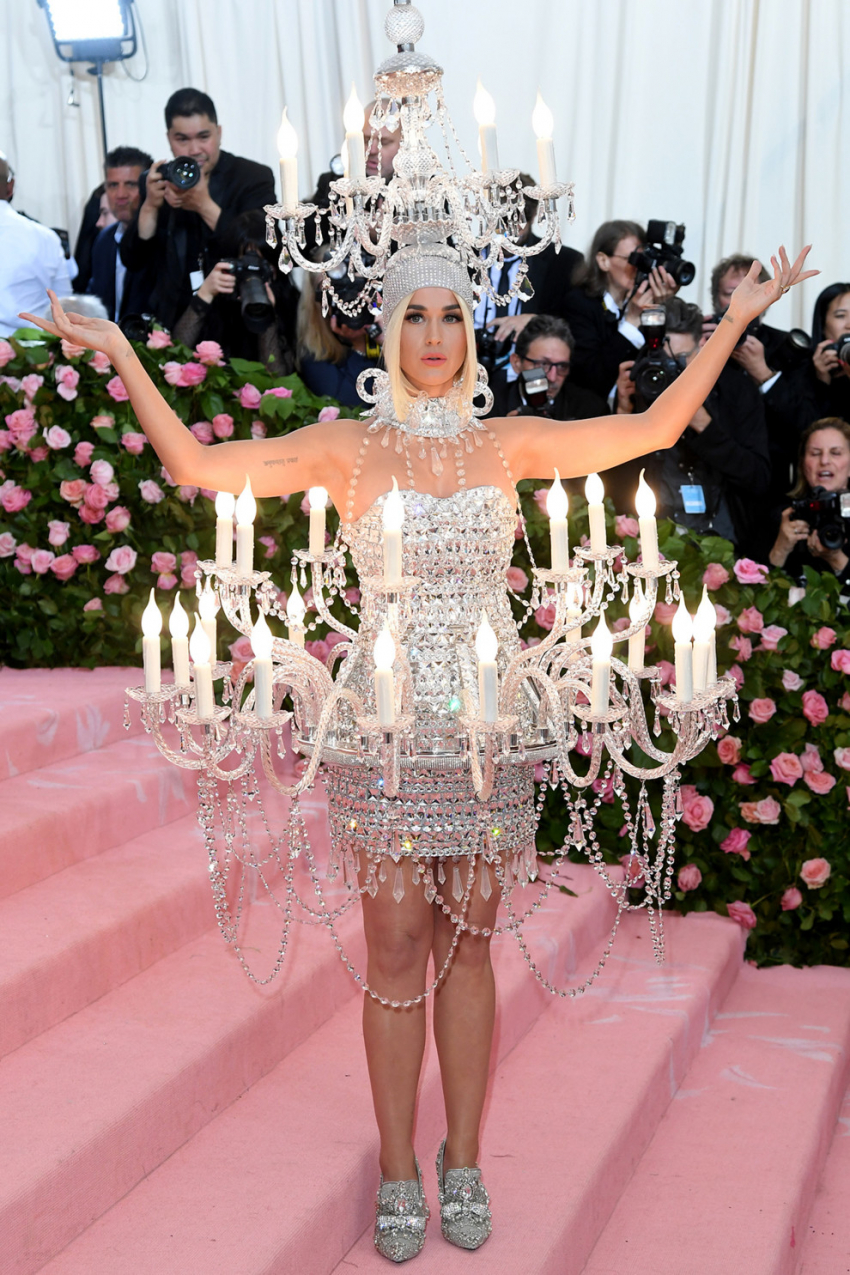 Кэтти Перри, 2019Какой бал без роскошной люстры? Видимо, именно с такими мыслями Джереми Скотт из Moschino и певица Кэтти Перри придумывали ее образ для Mat Gala в 2019-м году, в котором мастерски был спрятан блок с батарейками.