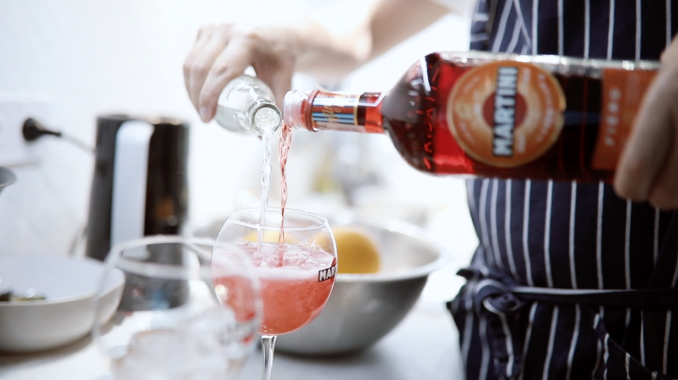 Лёгкий и освежающий коктейль MARTINI Fiero & Tonic (для него вам понадобится лед, 50 % MARTINI Fiero, 50 % тоника, слайс апельсина) Евгений предлагает дополнить оригинальной закуской – запеченными кабачками с дынным конфитюром. «Любимый рецепт Леси Украинки», – сообщает Клопотенко, который много лет изучает украинские рецепты и переосмысляет на современный лад, давая им новое звучание.