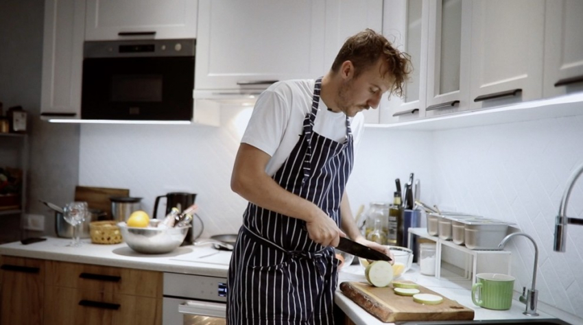 Евгений душевно и с юмором показывает свою холостяцкую квартиру, не без гордости рассказывает о своих хобби (оказывается, он увлеченный коллекционер) и делится лайфхаками, как подбирать специи под блюдо (спойлер: главное – чтобы вам нравился их аромат). Книги и кулинария – две главные страсти Евгения Клопотенко. Он демонстрирует свою настольную книгу, которую читает уже не первый год – это «Большой кулинарный словарь» Александра Дюма далекого 1873 года выпуска. Еще одна настольная книга Евгения – «Перша українська загально-практична кухня», старинное издание 1929 года, собравшее аутентичные рецепты национальной кухни.