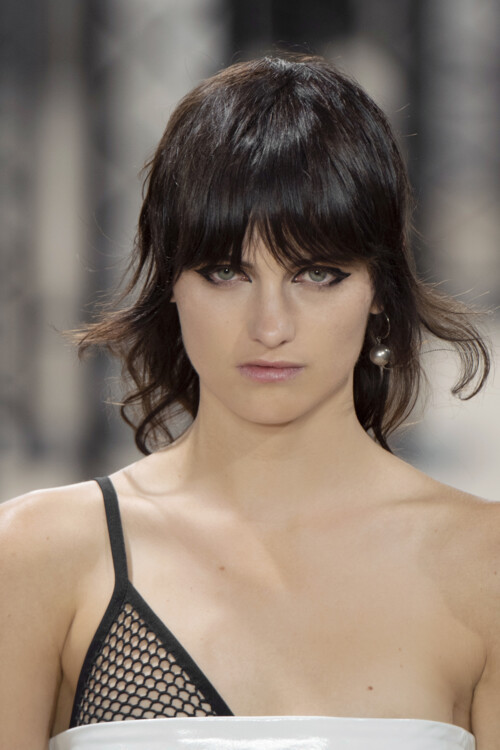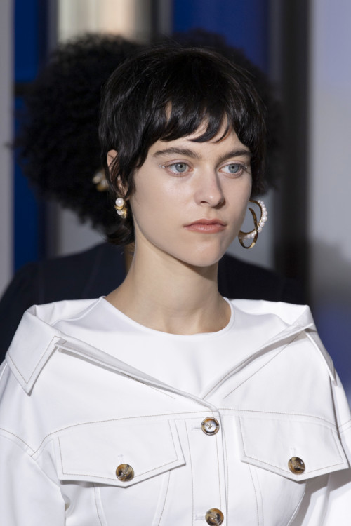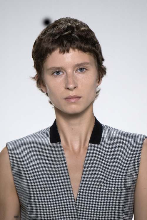 Akris Короткая стрижка, открывающая лобТакая стрижка идет девушкам с изящной шеей и правильными чертами лица. Проще всего укладывать ее обладательницам вьющихся волос. Достаточно немного текстурирующего спрея, чтобы создать модную прическу. Примеры для подражания можно было увидеть на показах Dior, Givenchy и Balmain.