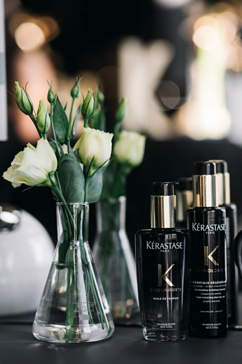 Начало осени ознаменовалось выходом обновленной гаммы средств Kerastase Chronologiste, которую поклонники марки ждали с особым нетерпением. Она не просто помогает ухаживать за волосами, но и способствует их регенарации и ревитализации, а также является отличной профилактикой старения кожи головы благодаря витамину Е, гиалуроновой кислоте и молекуле абиссина в составе. Достигнуть необходимого эффекта помогают шесть средств, входящих в линейку – клинсер, шампунь-ванна, маска, термозащитное средство, парфюмированное масло-дымка и сыворотка, которые можно использовать как дома, так и в рамках полноценной уходовой процедуры в салоне. Первыми смогли протестировать новую гамму гостьи салона Backstage. Рассказываем обо всех по порядку.