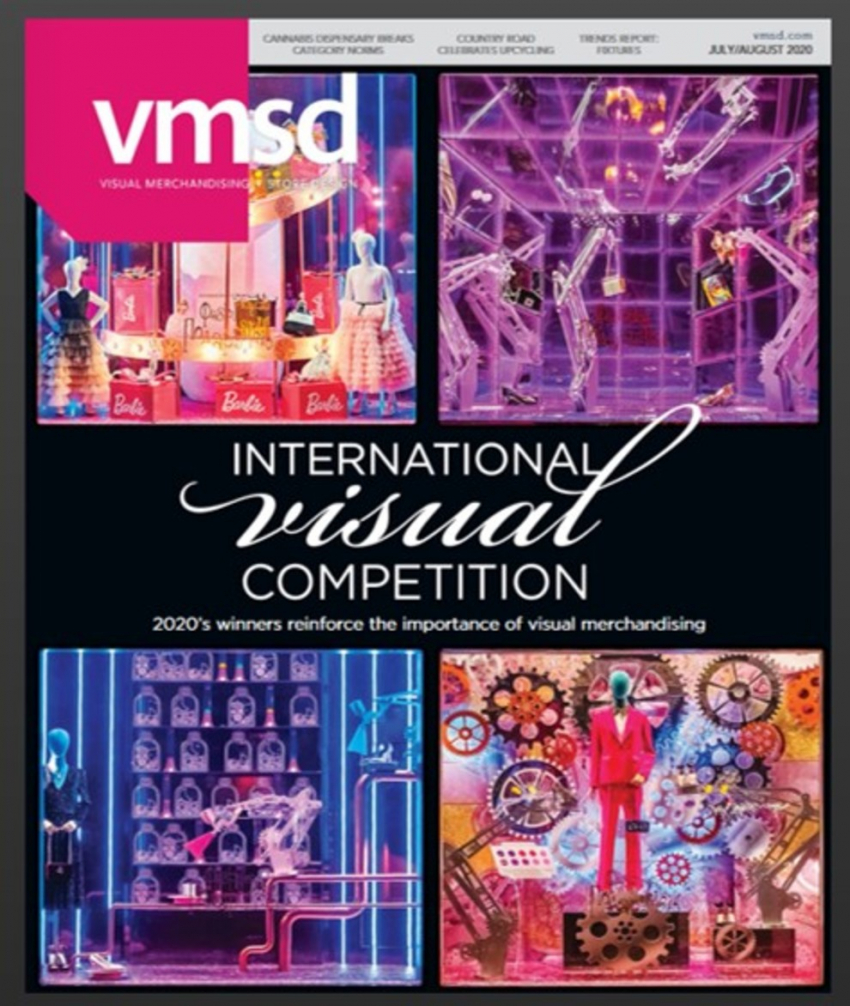 Обложка журнала VMSD с витринами ЦУМЛетний номер издания VMSD посвятил витринам главного универмага страны обложку, а внутри есть большой материал об истории создания проекта и его реализации. Стоит отметить, что весенние витрины “Перерождение” 2019 года также были отмечены наградой и получили премию Honorable mention.