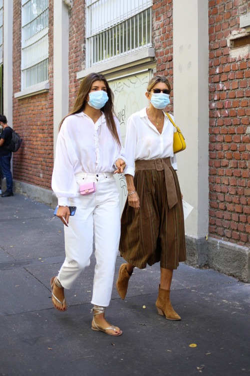 Милан – модная столица, которая первой встретила эпидемию коронавируса в феврале 2020-го. Спустя полгода город уже вернулся к нормальной жизни и по максимуму наслаждается каждым свободным днем. Местные модницы с легкостью вписали маски в свои образы, сочетая их и со строгими жакетами, и с инфантильными платьями. Второй вариант как раз выбрала Анна Делло Руссо, без которой еще несколько лет назад не обходился ни один стритстайл-репортаж. Сегодня же ее появление в объективах фотографов в светлом и воздушном наряде выглядит особенно символично и оптимистично, вселяя надежду, что времена неопределенности у нас скоро закончатся и никто не сможет органичивать нашу свободу перемещения.
