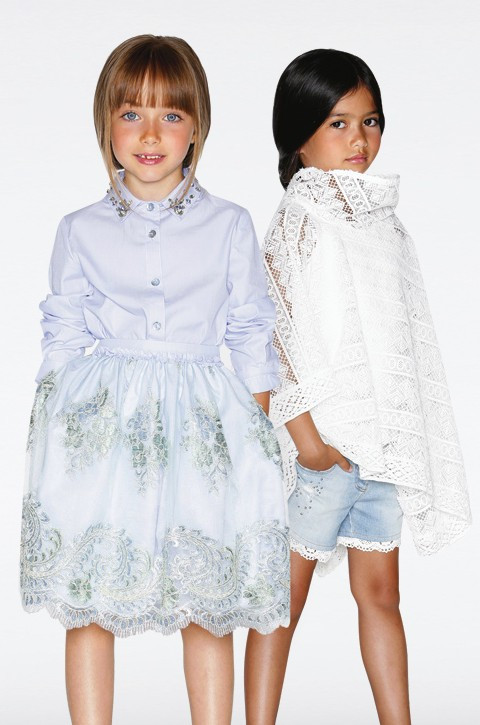 Стиль летней коллекции Эрмано Шервино критики тут же окрестили гипер-женственным. Главную роль дизайнер отдал кружеву: в один или несколько слоев, в гордом одиночестве или в сочетании с шелком или кашемиром, — именно кружева создают образ настоящей итальянской дивы. То же самое мы видим и в детской коллекции, разве что кружево здесь также соседствует и c демократичным денимом.