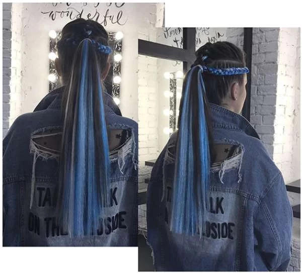 Подбор цвета искусственных прядей зависит лишь от индивидуальных предпочтений и настроения. Сегодня в моде насыщенные неоновые расцветки, они прекрасно сочетаются с тёмными и светлыми локонами. Обычно блондинки выбирают голубые, розовые, шоколадные оттенки.