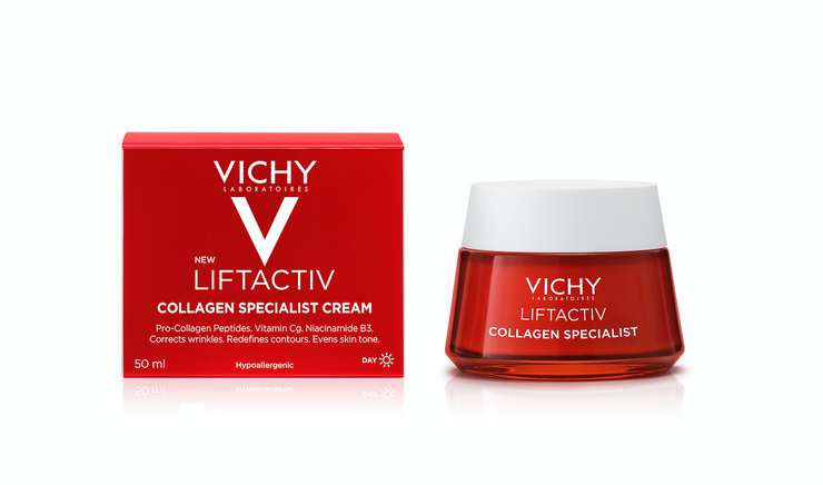 Чтобы помочь коже противостоять воздействию экспозом-факторов и замедлить появление признаков старения, марка VICHY перезапускает дневной крем Liftactiv Collagen Specialist. И теперь в новой формуле в 3 раза больше про-коллаген пептидов, которые, соответственно, в 3 раза повышают выработку коллагена в коже. Также в составе средства — ниацинамид (он уменьшает видимость пигментных пятен, повышает увлажненность кожи и препятствует потере влаги) и Витамин С (обеспечивает кожу антиоксидантной защитой, препятствует образованию свободных радикалов).