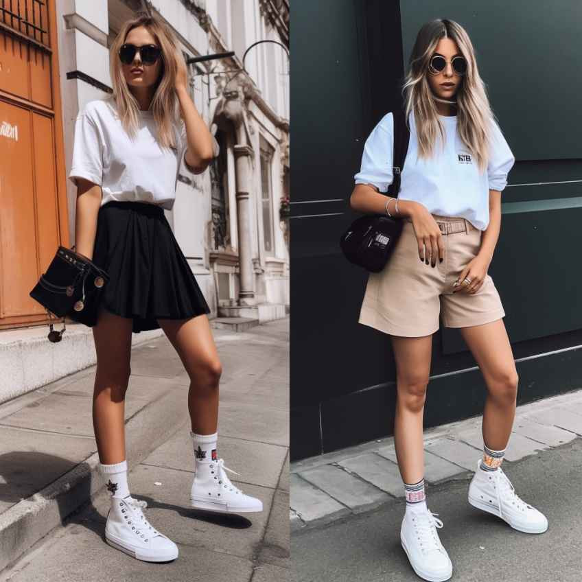 - Учитывайте сочетаемость с разными нарядами. Кеды являются универсальной обувью, которую можно комбинировать с разнообразными предметами гардероба. Они хорошо сочетаются с джинсами, шортами, платьями и даже юбками. Экспериментируйте с разными стилями, чтобы создать уникальные образы.