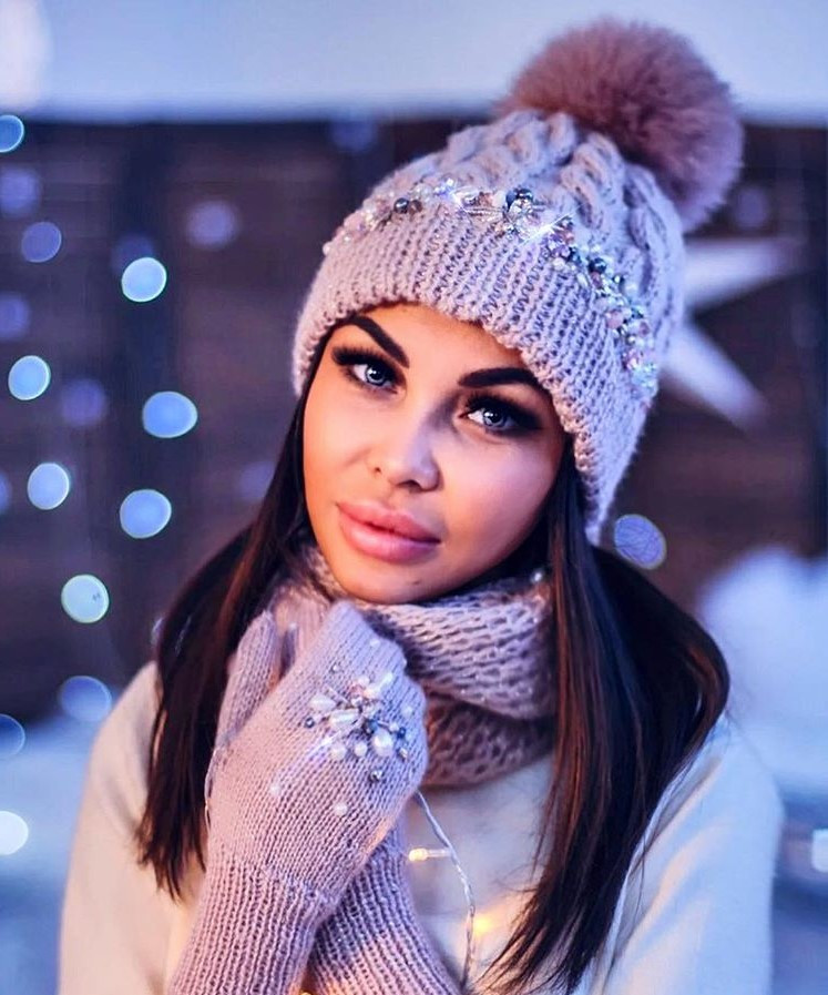 - Изюминку в образ привнесут шапочки с меховым помпоном. Альтернативный вариант – элемент, выполненный из шерстяных нитей. Помпон может полностью совпадать по цвету с изделием или составлять с ним эффектный контраст.