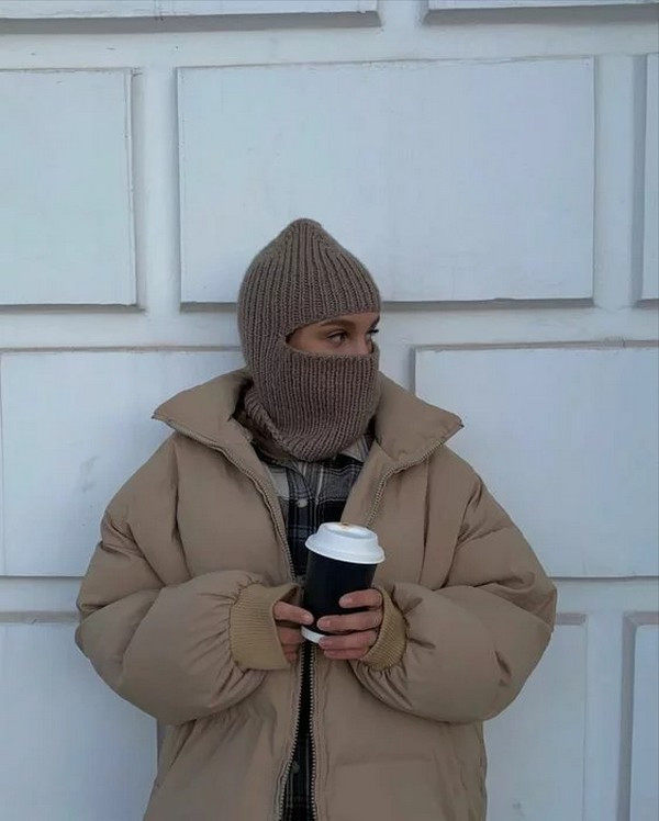 - Любительницы нестандартных решений смогут обратиться к оригинальной тенденции и подобрать шапку-балаклаву. Преимущество головного убора заключается в том, что он максимально защитит от холода. Это обусловлено необычным фасоном, прикрывающим нижнюю часть лица. Видимыми для обозрения остаются только глаза и брови. Стилисты рекомендуют подбирать балаклаву, оснащённую змейкой-молнией. При необходимости деталь можно расстегнуть и оставить лицо открытым.
