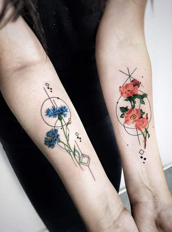 - Интересно смотрятся татуировки, имеющие парное значение. Примером служит изображение на одном предплечье солнца, а на другом полумесяца.