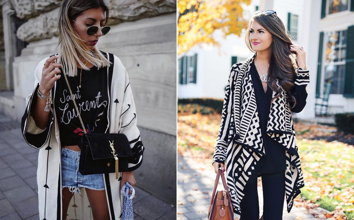 На самом деле, это очень стильные и эффектные кардиганы! Бохо — идеальный вариант для создания городского образа. Он прекрасно сочетается с кожей и денимом. Гранж более дерзкий и лучше всего вписывается в образ с мини-юбкой, с сексуальным корсетом, объемными брюками с потертостями. В кардиганах этих обоих стилей обязательно нужно использовать различные аксессуары.