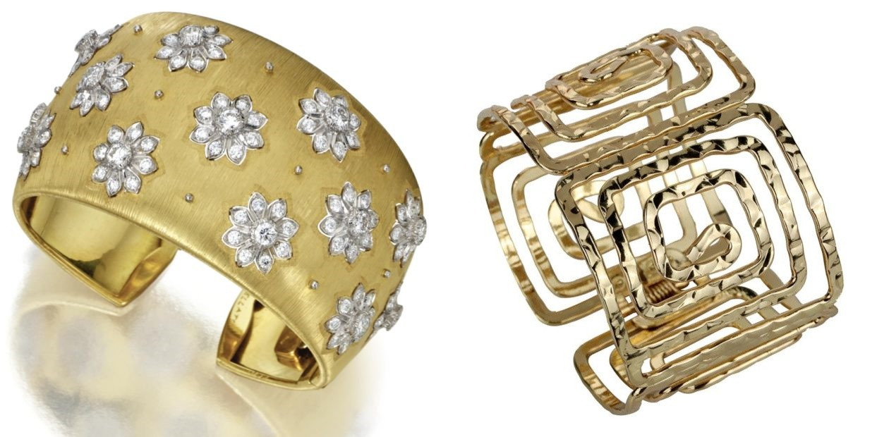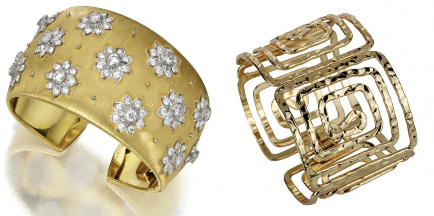 Новым веянием моды станут браслеты-каффа с необычными формами и геометрией, растительными элементами.