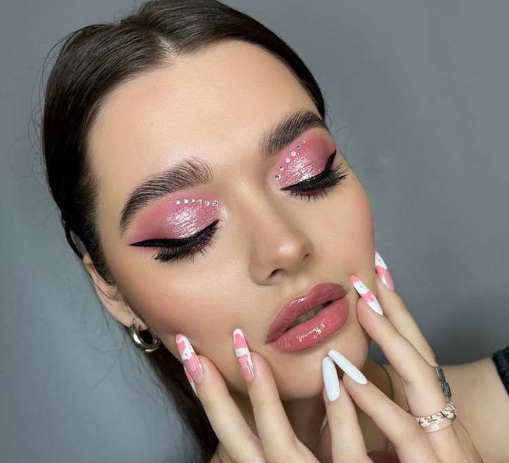 Новый Год 2023 — это год Кролика. Значит, и макияж стоит подобрать с элементами холодных оттенков или металла. При этом в тренде и нюд, и арт. Основное направление в новогоднем макияже — бронза, коричневый, персик и песок. Но и яркие цвета также приветствуются: весь спектр зеленого, синего, фиолетового, розового. Также в моде остаются довольно грубые стрелки с цветным оформлением. В Новый год можно и пошалить: пайетки, стразы, камни, рисунок. Кролик одобрит такой креатив, и праздник пройдет на славу, зарядив вас и вдохновив на свершения в 2023 году.