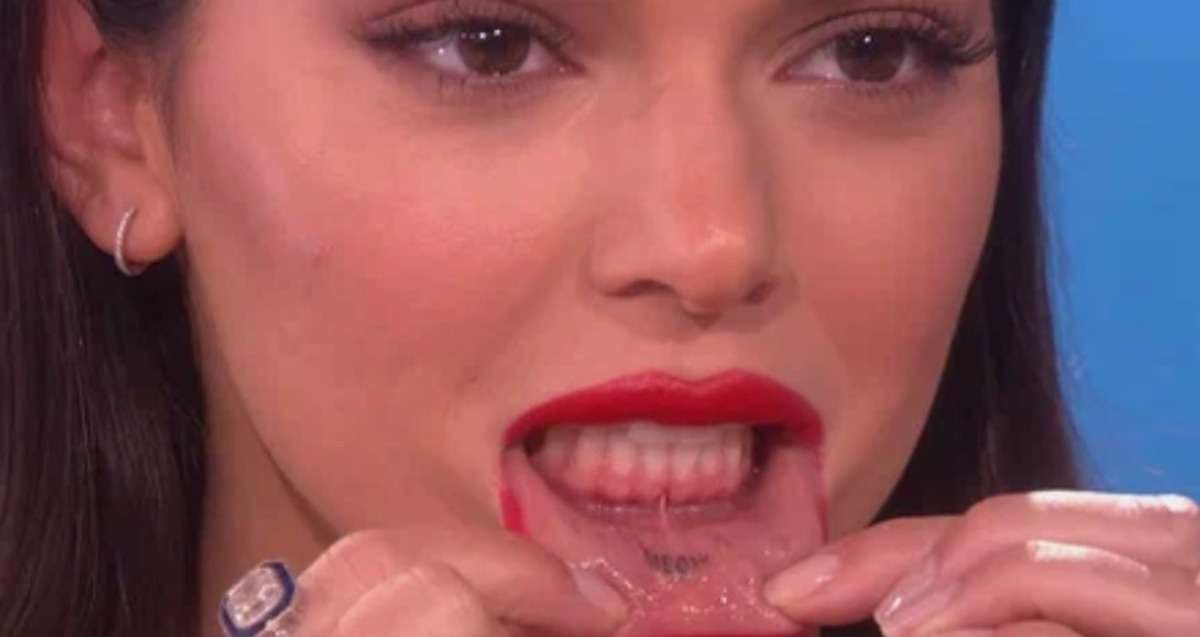 Во время одной из вечеринок Кендалл так перебрала с алкоголем, что могла произнести лишь «Мяу», почему-то девушке это показалось смешным и она отправилась в салон, чтобы оставить память о своем состоянии. На внутренней стороне губ Дженнер набили три буквы — «Мяу».