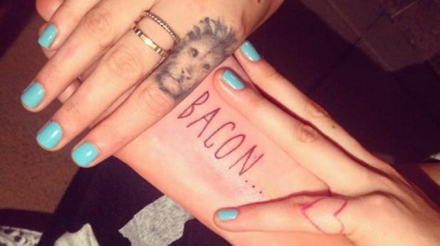 Актриса поступила, как многие клиенты тату-салонов, оставив на теле память о своей главной любви. Правда, это не имя мужчины, мамы или подруги, а слово «Бекон». Да, именно этот продукт Кара считает главной слабостью и страстью.