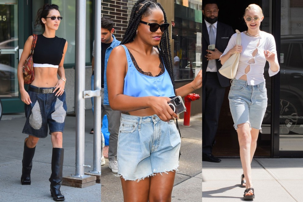 Джинсові шортиДжинсові шорти або джорти були особливо популярними у 1980-х та 1990-х роках і досі залишаються одним із головних елементів американського стилю. Сучасні шорти з деніму цього літа безперечно стали довшими і обтічнішими. Так, Белла Гадід і Кеке Палмер носили їх з укороченими топами, а Джіджі Гадід комбінувала свою світлішу пару з топом з асиметричним вирізом.