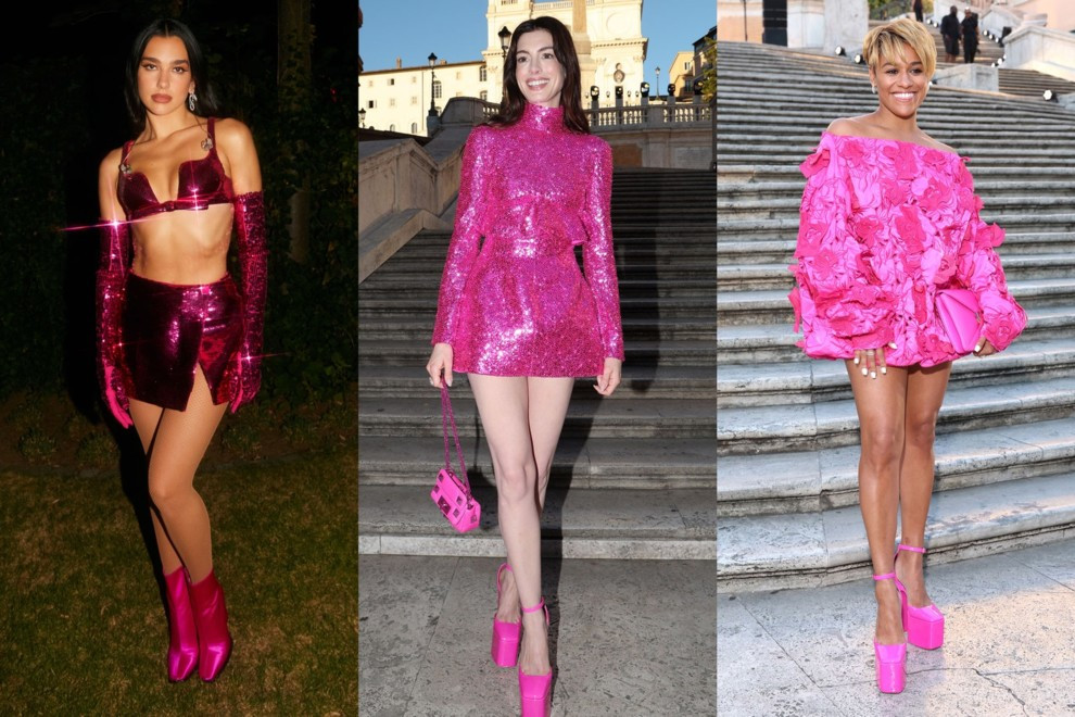 Конан Грей, A$AP Роккі, Бред ПіттЯскраво-рожевийЗавдяки рожевій колекції Valentino і постійному тренду Barbiecore (дівчача естетика, натхненна модною лялькою Barbie) яскраво-рожевий відтінок став головним кольором цього літа. Енн Гетевей, Аріана ДеБоз і Дуа Ліпа є одними з незліченних лідерок, які носять рожевий колір з ніг до голови. Ви дійсно можете носити його у монохромному образі або придбати лище один ефектний виріб, щоб зробити яскравий акцент.
