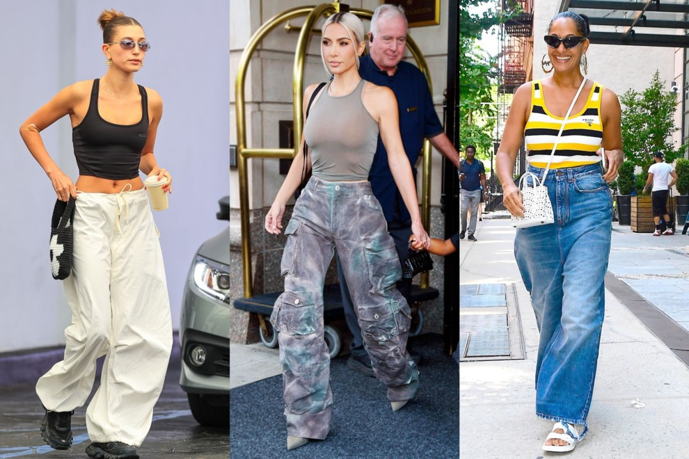 Дуа Ліпа, Енн Гетевей, Аріана ДеБозМаленькі топи + великі штаниНайтрендовішим силуетом цього літа став невеликий топ і об’ємні брюки. Такі зірки, як Гейлі Бібер, Кім Кардаш'ян і Трейсі Елліс Росс, поєднували свої короткі майки з широкими джинсами або брюками-карго з кишенями. Цей базовий одяг – улюблена літня формула зірок на щодень, пропонуємо брати приклад.