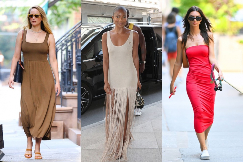 Кайя Гербер, Тесса Томпсон і Кендалл ДженнерОблягаючі сукніЛегка літня сукня є обов’язковим елементом гардеробу у теплу пору року, а в останні кілька місяців фаворитом знаменитостей був чистий облягаючий силует. У Нью-Йорку Дженніфер Ловренс надягла коричневу сукню Matteau з квадратним вирізом, а Емілі Ратаковскі вибрала червону сукню, що окреслюює фігуру, та поєднала її з кросівками. Тим часом Габріель Юніон надягла трикотажну сукню з торочками Prada, яка показує себе у русі.