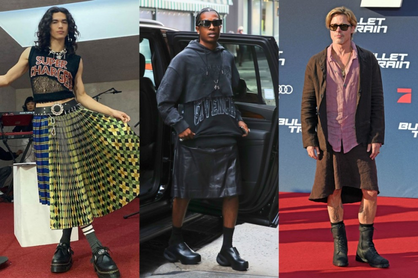 Дженніфер Ловренс, Габріель Юніон, Емілі РатаковскіЧоловічі спідниціМода дедалі більше стає безґендерною, а спідниці набувають унісекс-стилю. Цього літа Конан Грей, Бред Пітт і A$AP Rocky продемонстрували на власному прикладі, що носити спідниці можуть і чоловіки. Зірки вибирали спідниці зі шкіри, льону чи плісованої тканини Chopova Lowena. У поєднанні з крутою футболкою або майкою це, безсумнівно, свіжий образ.