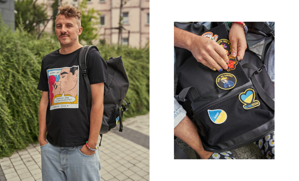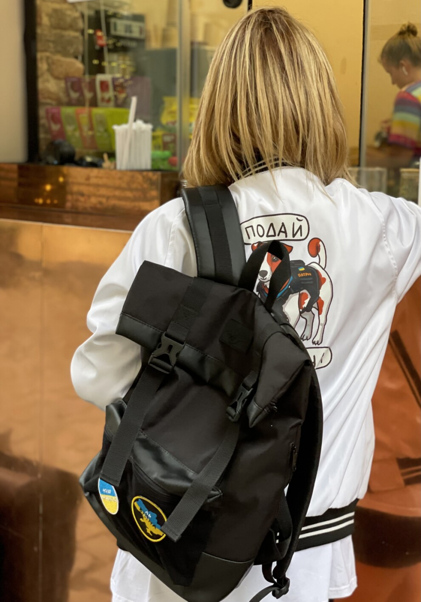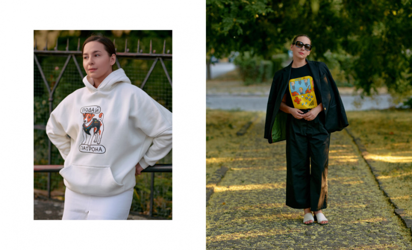 Патріотичний мерч – це одяг, який хочеться носити. Він дає змогу без слів висловити підтримку «своїм», показати, що ми – однієї крові. Але дотепер я не мала жодного «патріотичного» предмета одягу – не знаходилося того, що збігалося б з внутрішнім відчуттям доречного. Проте зараз, здається, я зібрала класну капсулу: і для міста, і для заміських прогулянок. Все легко поєднується одне з одним – і легко мати вигляд updressed, але не overdressed. Моя улюблена річ з колекції – бомбер з Патроном. Я лайкаю всі фото собачки в інстаграмі, коментую їх і навіть робила інтерв’ю з її власником, тож вибір був визначений. До речі, цей бомбер двосторонній – можна носити як білим наверх, так і чорним, а це дуже зручно. Футболку обожнюю за рядки Сосюри, а наплічник – це класна альтернатива тривожній валізці. І в нього легко вміщується ноутбук.