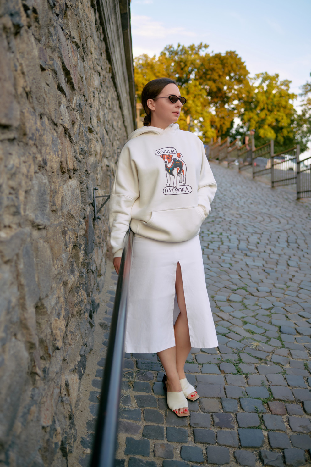 Віолетта ФедороваСама колекція хороша тим, що її можна поєднувати з усім гардеробом. Так, у мене в шафі висять переважно суворі однотонні речі, урізноманітнити які якраз і вийшло зухвалою футболкою або м’яким, як хмара, худі з Патроном.