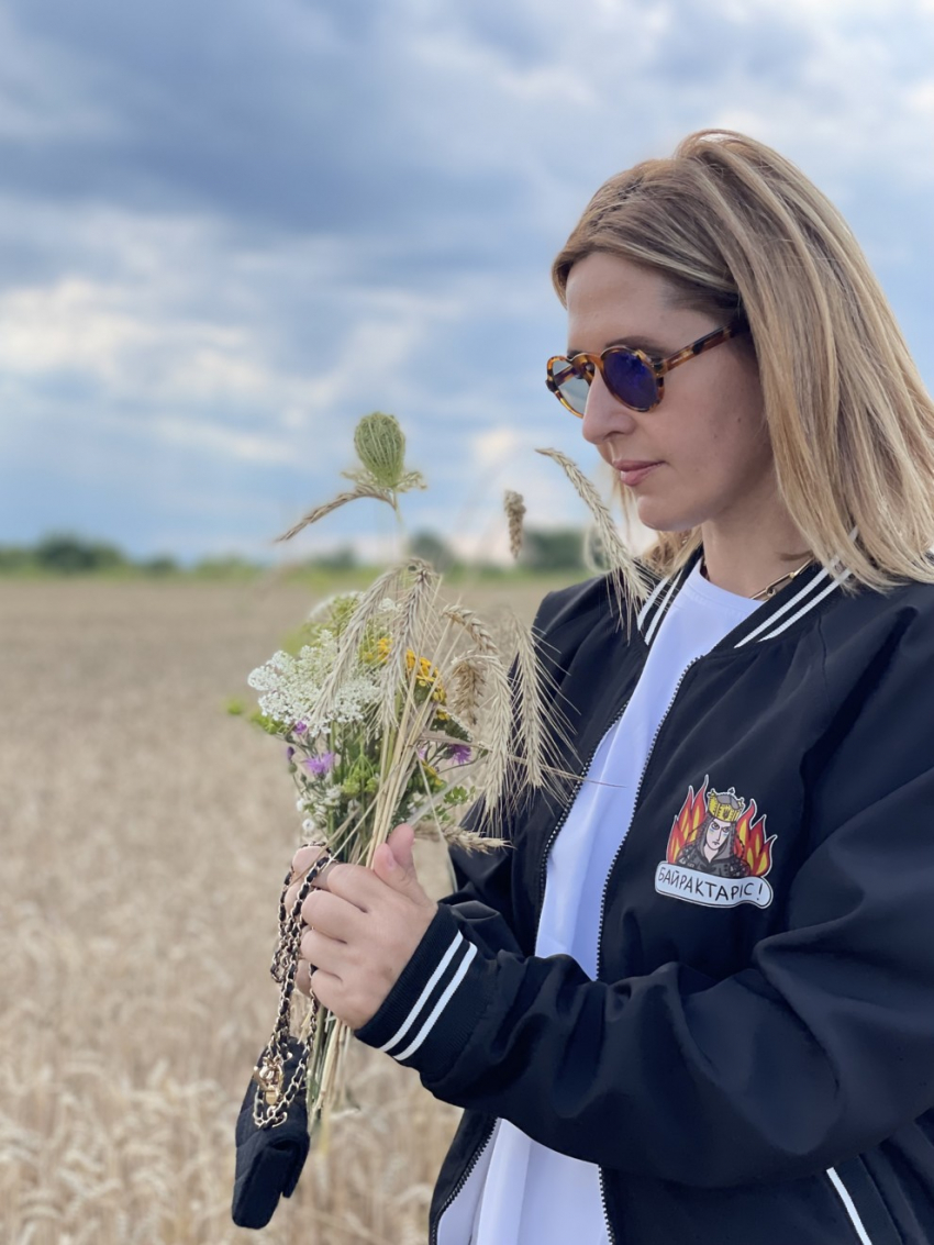 Тетяна КодзаєваПередусім я звернула увагу на вислів, зображений на футболці з колекції. І він одразу запав у душу, адже моя хата справді «не скраю» і, маючи велику аудиторію, я закликала й закликатиму всіх бути не байдужими. Для моєї англійськомовної аудиторії я розповіла, чим важлива колекція та що означає цей вислів. Сумку вибрала для спортивних образів – вона універсальна, проте завдяки патріотичному оздобленню дуже близька серцю.