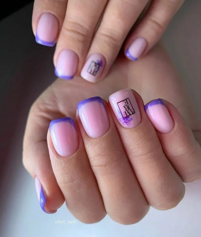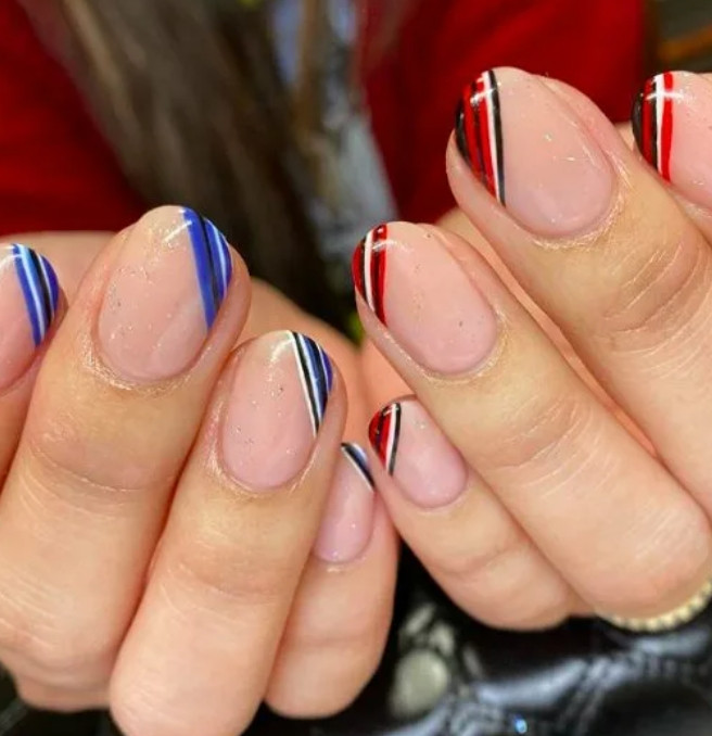 При помощи диагональной «улыбки» вы можете придать френчу нестандартный вид. Такой дизайн будет выглядеть стильно и нежно. Можно сделать несколько разноцветных полосок для усиления акцента.