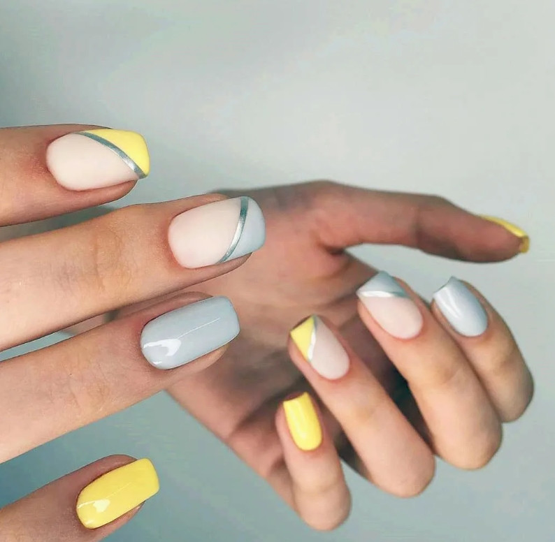 Этот вариант подойдет для ярких и эффектных девушек. Его чаще всего выбирают студентки или школьницы. Вы можете сочетать любые оттенки. В 2023 году ограничений в цветовой палитре нет. Попробуйте сделать радужный маникюр.