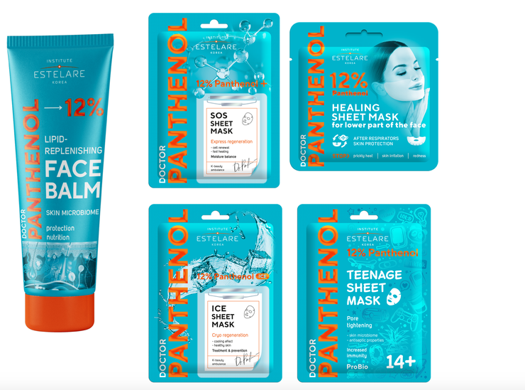 Всего в линейке — 4 вида тканевых масок и универсальный бальзам для лица. Маски разработаны под индивидуальные потребности: возрастные (для взрослых и для тинейджеров в пубертатный период), температурные (с легким охлаждением и без), зонирование (для лица, для нижней части лица после ношения респираторов). Бальзам для лица с 12% пантенола адаптирован для ежедневного применения: можно использовать даже под макияж, устранены чрезмерная липкость, жирность и блеск, а также неприятный аромат, свойственный продуктам с высоким содержанием пантенола.