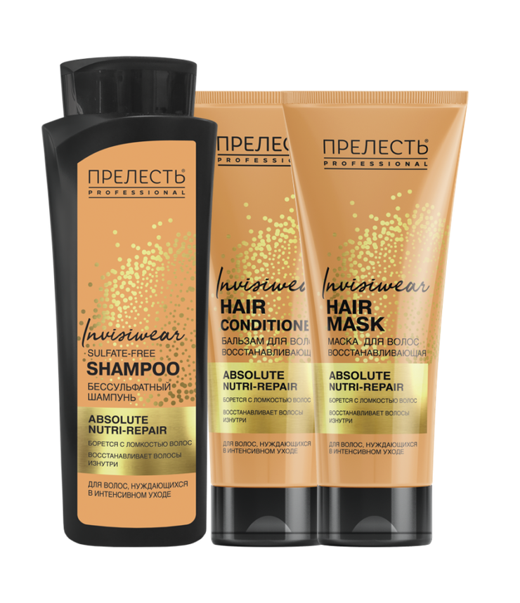 Чтобы не подвергать волосы еще большему стрессу, тщательно изучайте состав шампуней, бальзамов и кондиционеров. Если видите среди ингредиентов сульфаты, парабены, минеральные масла и искусственные красители, лучше отложите в сторону такую баночку. Новая коллекция Invisiwear бренда «Прелесть Professional» — это три средства для восстановления волос.