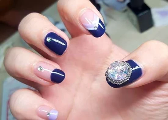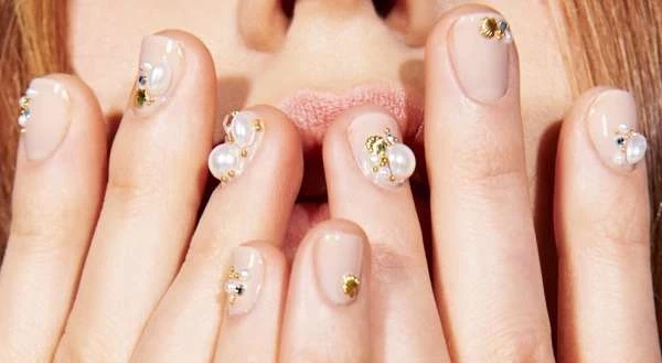 Маникюр, украшенный крупными и средними по величине камнями, кореянки выполняют не только на праздник. Стразы и украшения – классика в индустрии корейского нейл-арта. Камни могут быть размещены на однотонном или блестящем гель-лаке пастельного оттенка.