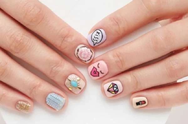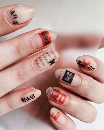 В корейском маникюре мастера выбирают нечёткие линии и одинаковый дизайн для всех ногтей, а предпочитают небрежные рисунки, похожие на детские. Кореянки находят это милым и привлекательным, так как считают, что такие рисунки придают ногтям особый шарм.
